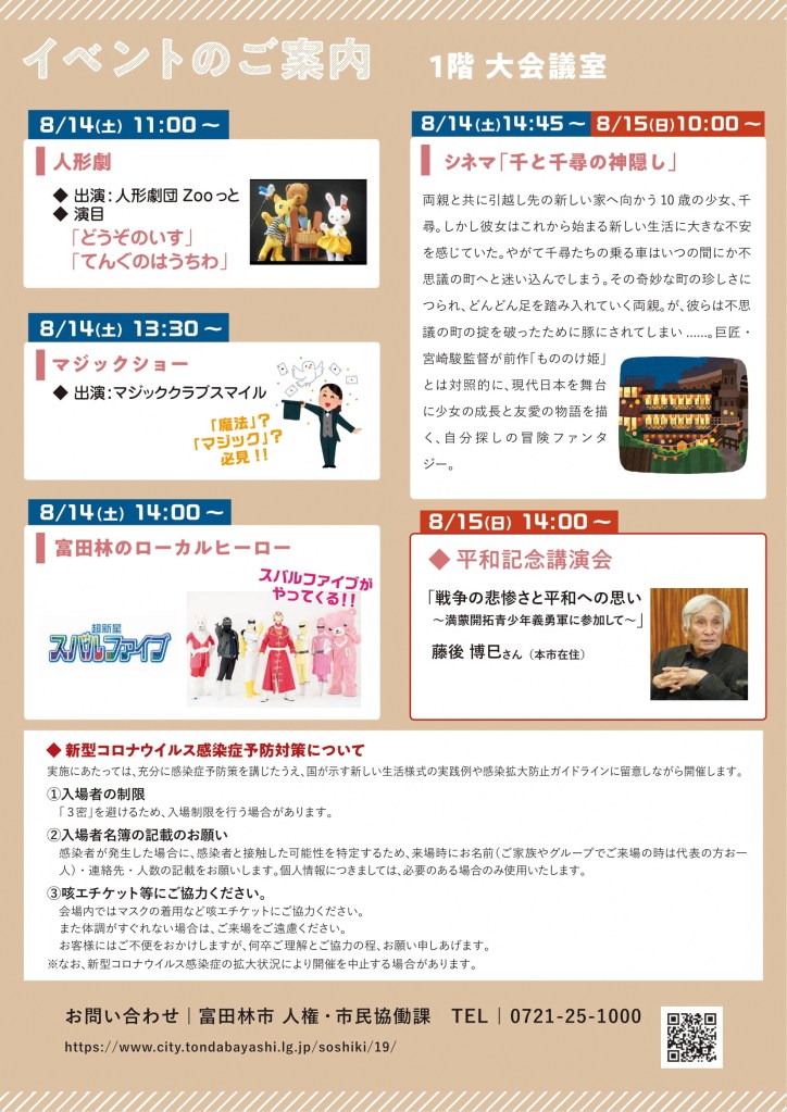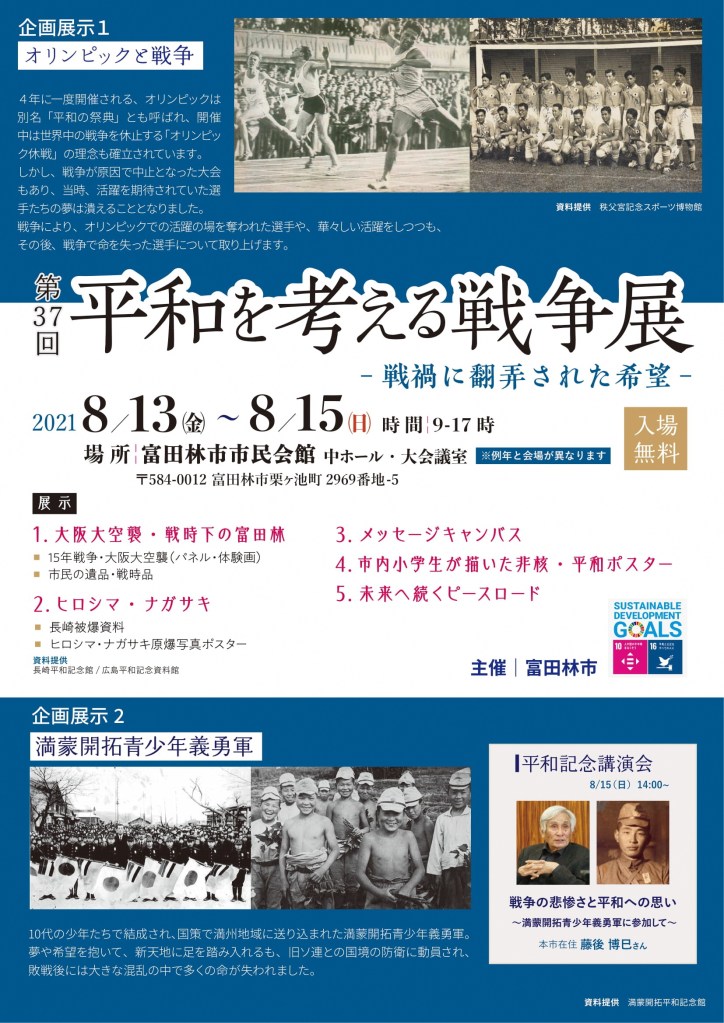 ⭐️8月12日(土)平和を考える戦争展 富田林市市民会館