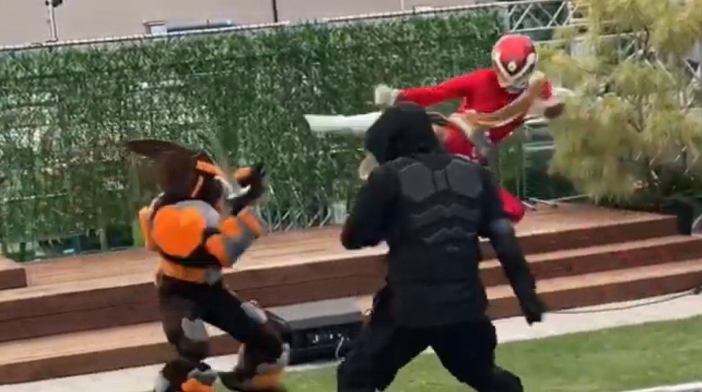 スバルファイブの応援に忍者軍団も参戦!はげしいアクションを展開しました。