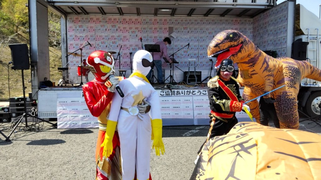 スバルファイブショーは12時30分から。ヒーローショーのほかにダンスにも飛び入り参加したよ。とにかく今日も地球はまもられた。観に来てくれたみんな、どうもありがとう。スバルファイブはショーのあと、次の出演場所へ移動したのだった。地球を守るのは忙しい。