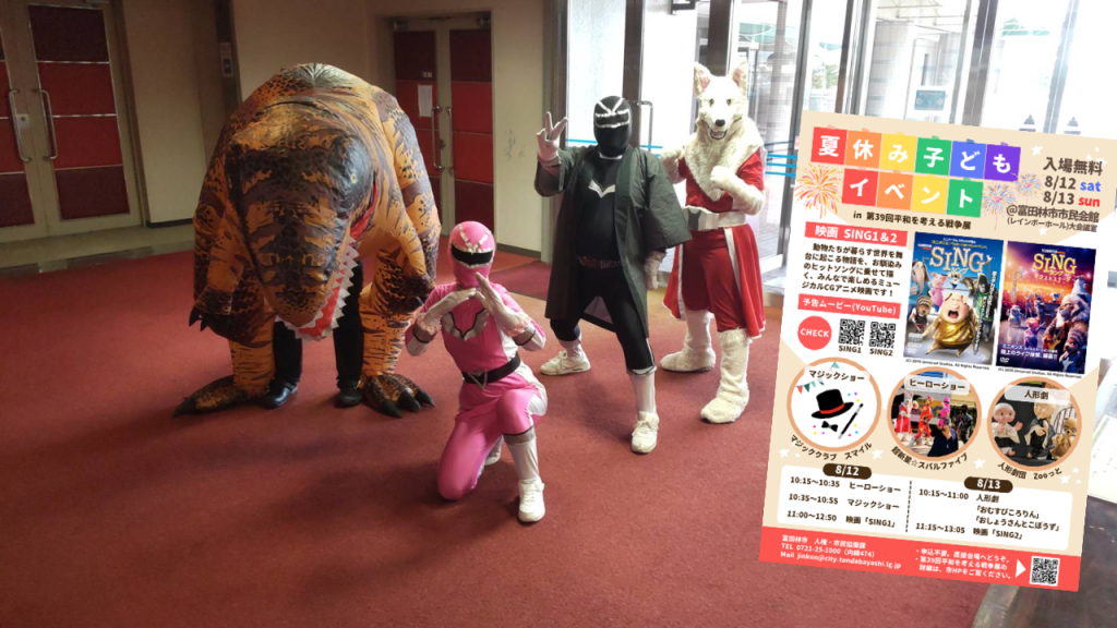 京都市中京区丸太町の竹間公園で開催された「きぼうのつどい」に超新星スバルファイブが出演しました。ショーを観に来てくれたみんな、どうもありがとう。