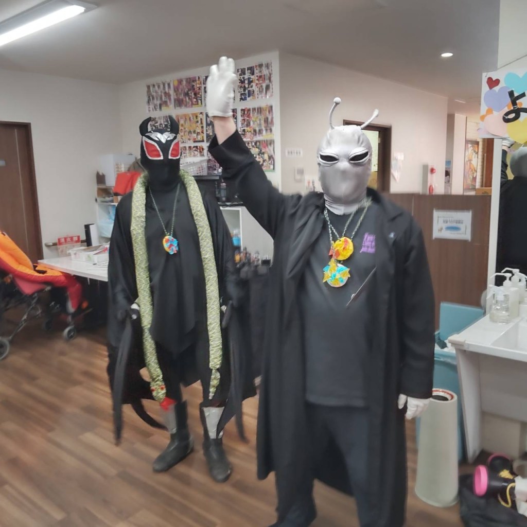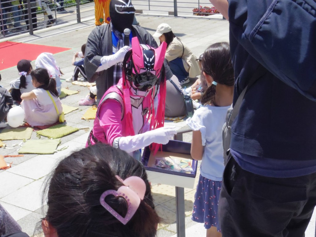 今年もワークくみのきフェスタに超新星スバルファイブが登場。利用者さま限定のショーを行いました。この日、スバルピンクとこーもり男は鶴見緑地でのショーとかけもちの大忙し。