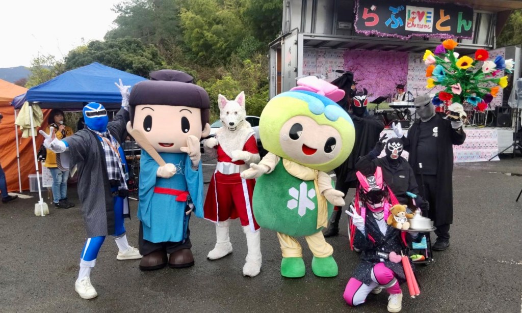 京野菜やお味噌のブースが並ぶなか、地球の平和のために活躍しました。