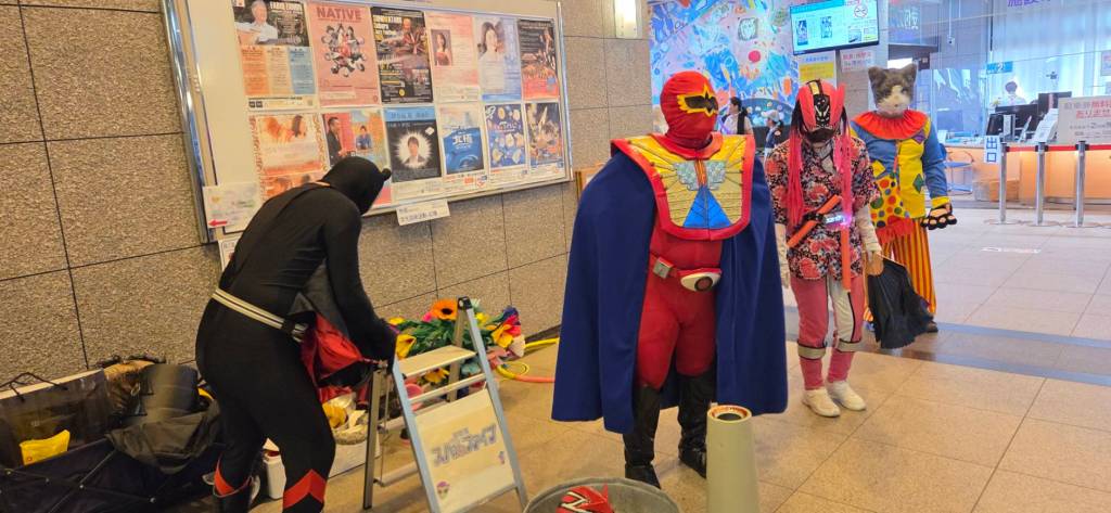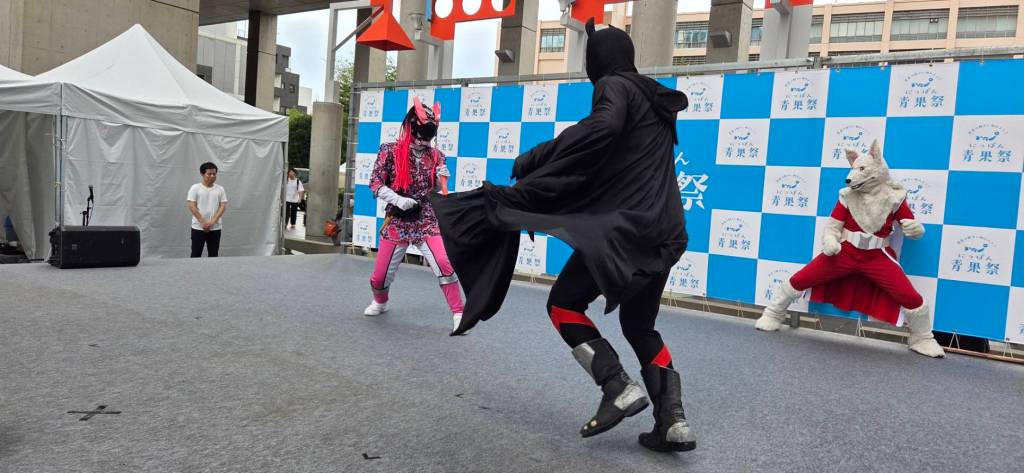 9月13日~14日に梅田グラングリーン&スカイタワー下で開催されたにっぽん青果祭にスバルファイブが出演しました。舞台はスカイタワーの真下。忍者も登場。とにかく今日も地球は守られた。