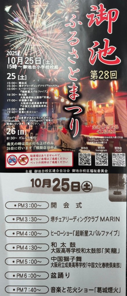 10月25日(土) 御池ふるさとまつり 堺市南区・御池台小学校グランド