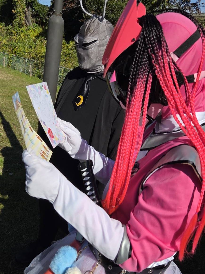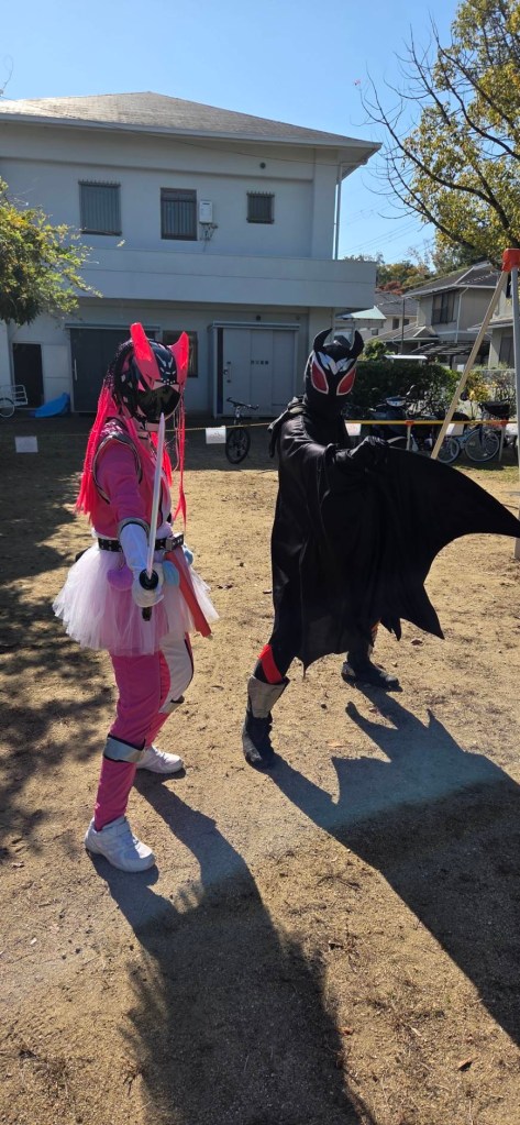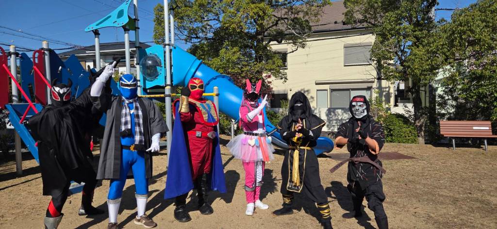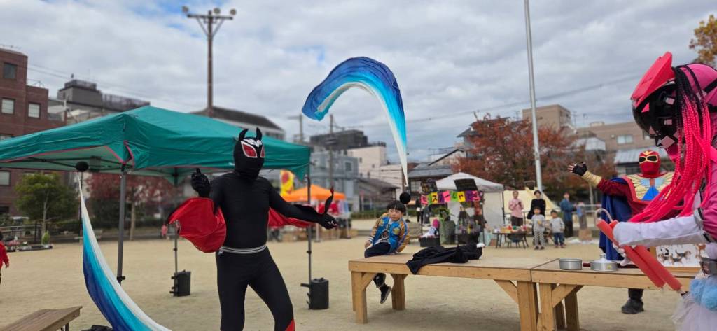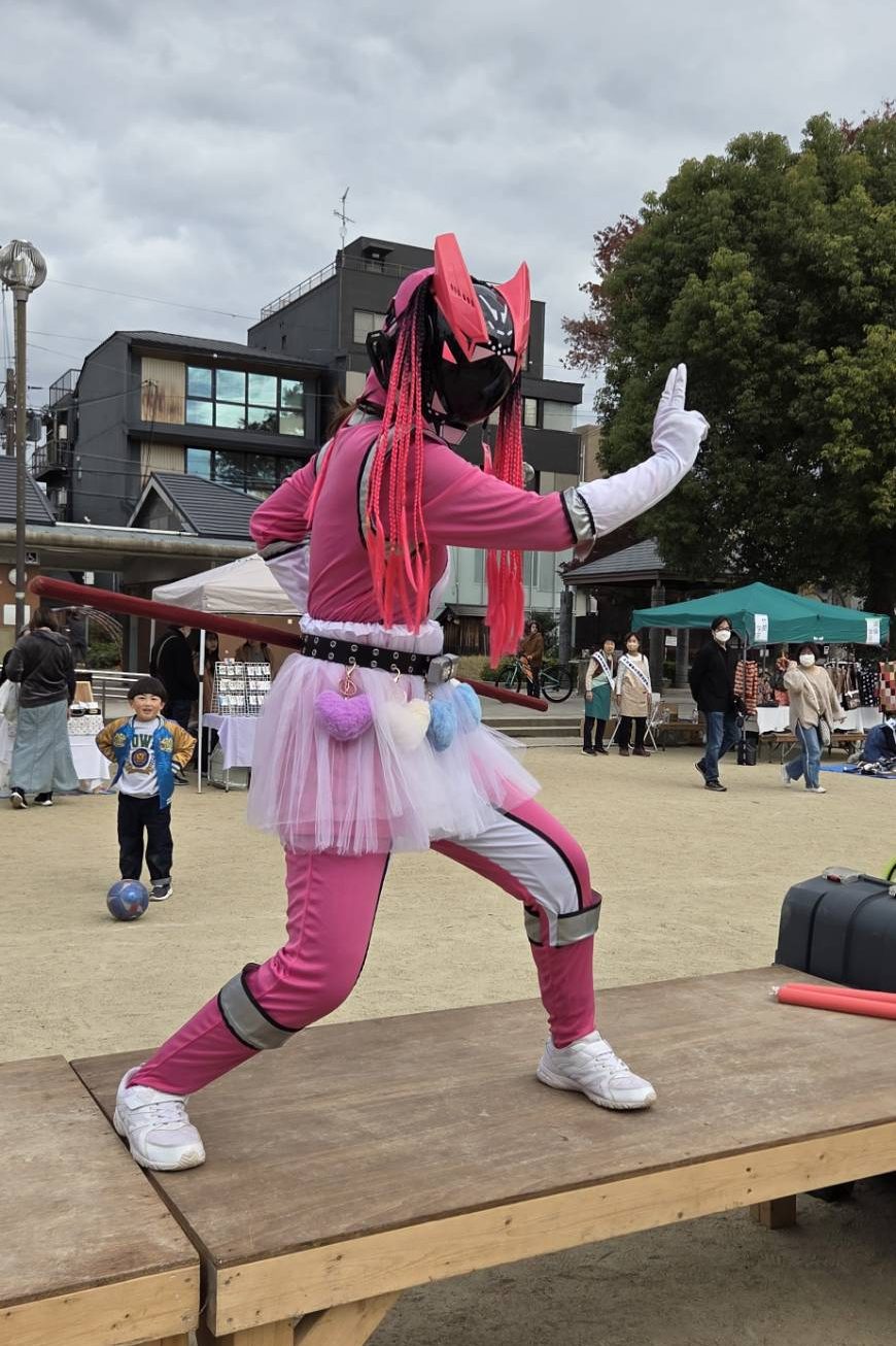 11月24日(月祝)も午前と午後のかけもちで地球を守ることになりました。午前は、池尻児童遊園でスバルファイブショー!3連休の3日めもいいお天気。