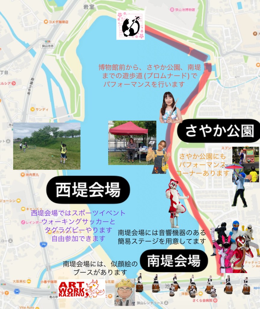 4月27日(土)13時から。狭山池まつり、南堤会場で、超新星スバルファイブショー。