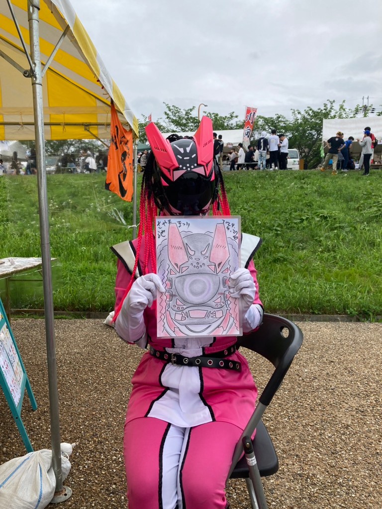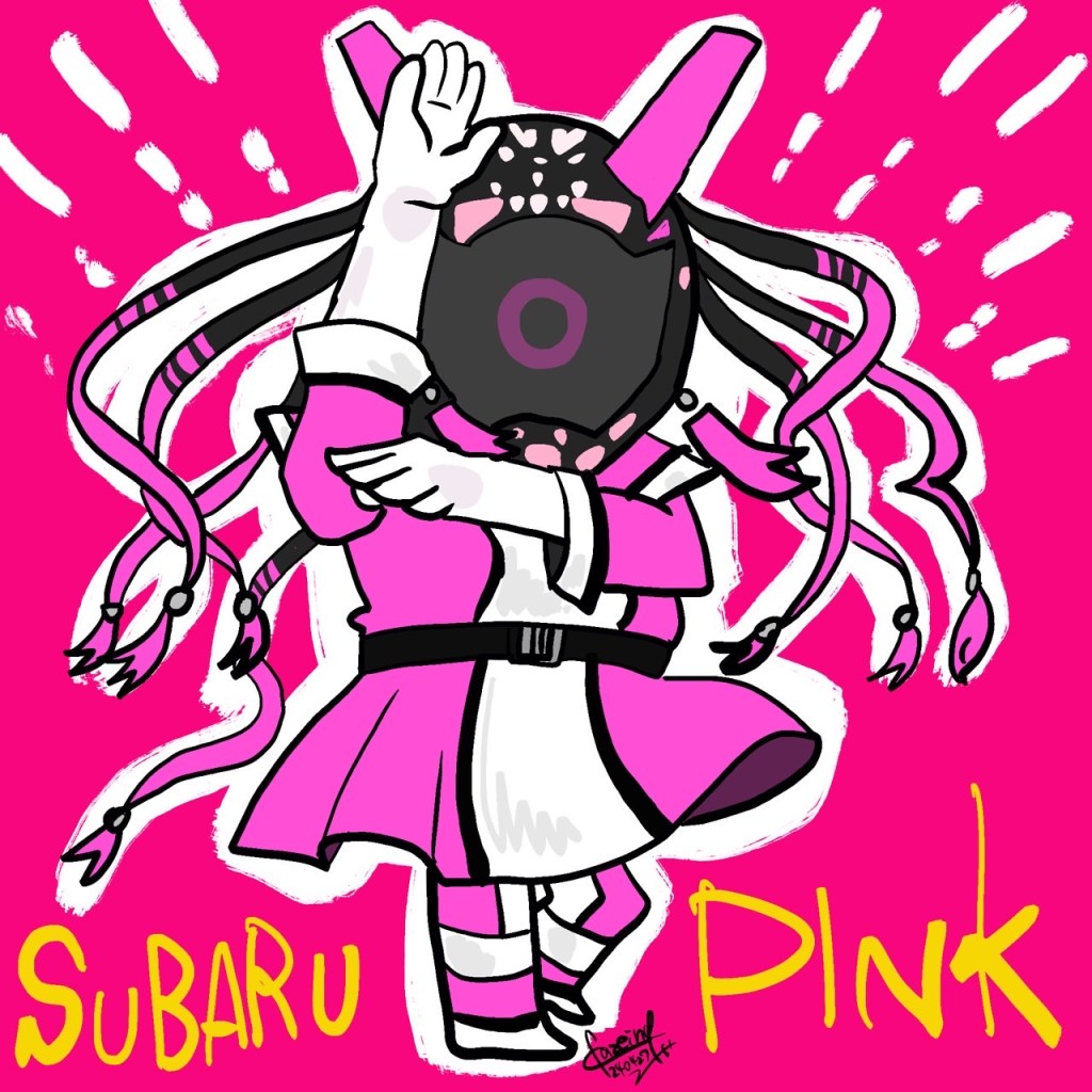 スバルピンクが、似顔絵パフォーマーさんに絵を描いてもらいました